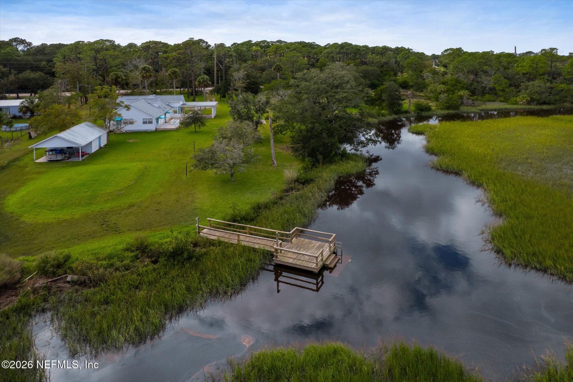 Welcome to your private waterfront sanctuary--an extraordinary opportunity to own over 3 acres of pristine Old Florida beauty just minutes from Historic Downtown St. Augustine and a short drive to the beach. Nestled along the peaceful marshfront of the San Sebastian River, this 1938 residence sits on 3.09 acres. Blending historic charm with upgraded living, the 4-bedroom, 2-bath home showcases character-filled spaces and amazing natural views. A spacious living room with a rustic stone fireplace sets the tone for relaxed gatherings, while the renovated kitchen features a double oven, center island, and open flow to the dining and family rooms--designed for both entertaining and everyday ease. Step through double glass doors to a generous 45' x 11' deck, the perfect spot for sunrise coffees or evening grilling, all with panoramic marsh views as your backdrop. The private dock invites you to launch a kayak, cast a line, or simply soak in the quiet beauty of your surroundings. A separate workshop offers space for hobbies, boat and RV covered parking, creative pursuits, or extra storage. Whether you're seeking room to grow, space to build, or a peaceful waterfront retreat, this rare property delivers a timeless charm, growth potential, and a coveted location. Experience the best of coastal Florida living in a setting that feels worlds away yet close to everything. Welcome home!