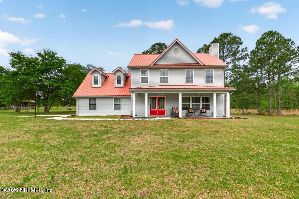 Escape the ordinary and embrace country living with this charming two-story farmhouse nestled on an expansive 12.22 acres in Hilliard. You are greeted with a covered front porch that welcomes you home with peaceful views. Step inside and explore this 2040 sq ft home with a generous open living room and a wood-burning fireplace that flows seamlessly into the dining area. The main level also features convenient under-stair storage, a half bath, a dedicated laundry room, and an attached two-car garage for all the practical necessities of daily life. Upstairs features the primary bedroom with a walk in closet. Primary bath has double sinks, a stand alone tub, and a separate shower. Two additional bedrooms and a large bonus room with endless possibilities. Two HVAC units to cool the upstairs and downstairs. Outside, the majority of land is cleared and equipped with fencing, making it ideal for horses, livestock, or simply stretching out under wide-open skies.16x24 Pole Barn. Close to the St. Mary's boat ramp and State forest. With locally rated schools nearby, this property delivers the rare combination of space, serenity, and convenience. Schedule your private tour today.